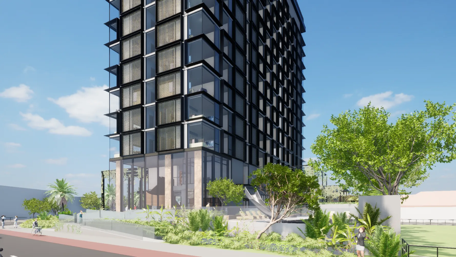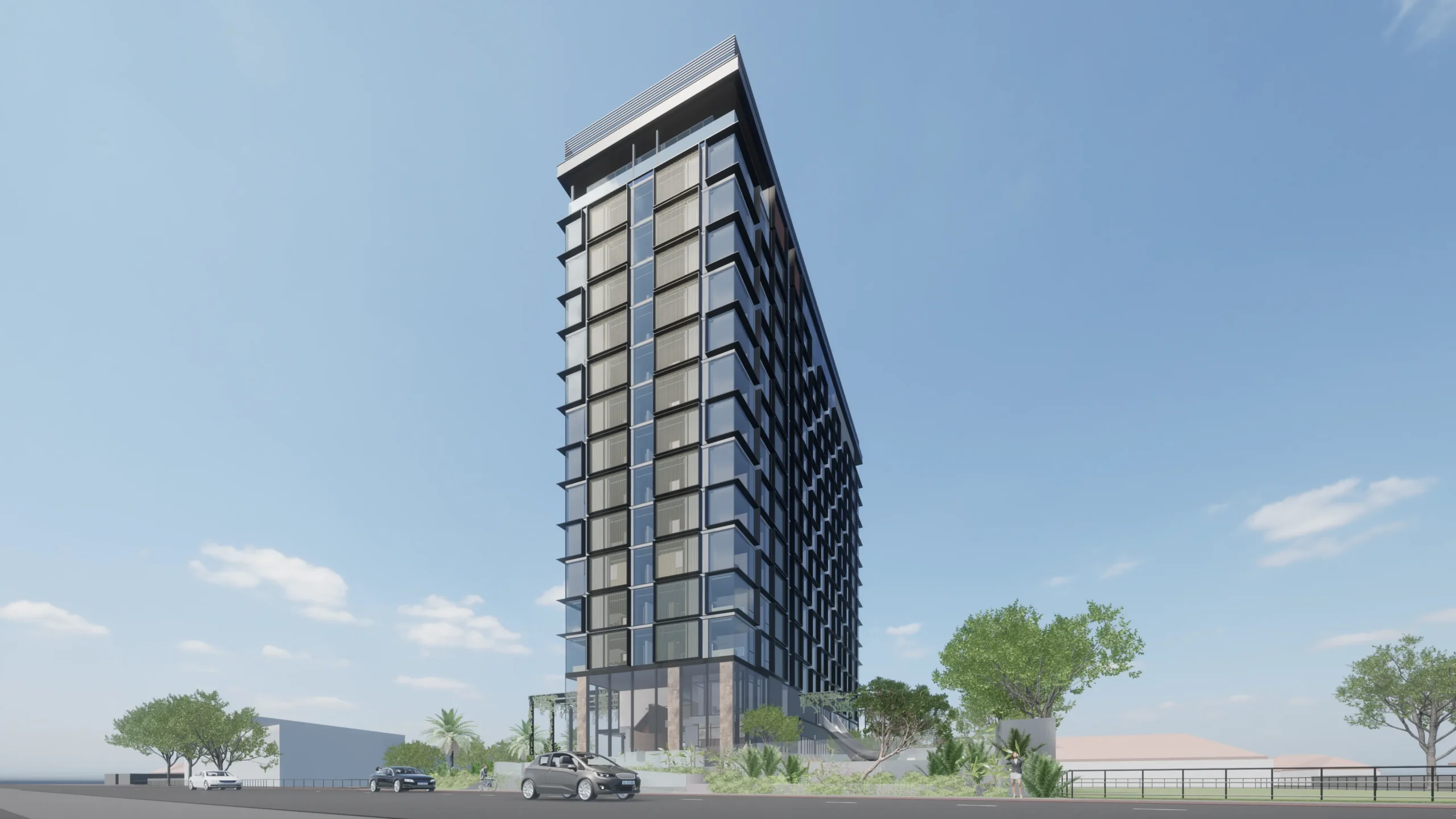 The proposal is fora 15-storey hotel incorporating a public rooftop restaurant and bar. The hotel will provide 226 rooms in a variety of formats to suit different short stay accommodation options and include 127 car bays.