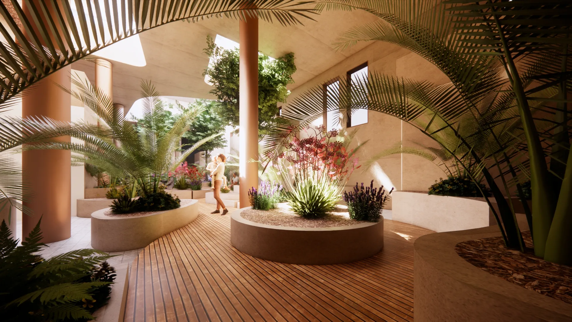 The architecture speaks to the coast—warm earthy tones, fluid forms, and robust materials—delivering a human-scaled, enduring response to the environment. Apartments are efficient yet generous,with floorplates designed to maximise efficiency, with logical room adjacencies, direct vertical circulation, and optimised daylight penetration into living areas.The communal spaces are designed with adaptability in mind to evolve with residents’ needs.